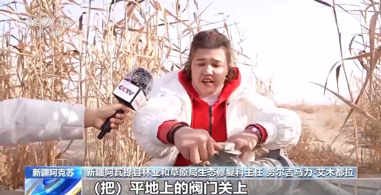新疆阿瓦提縣林業(yè)和草原局生態(tài)修復(fù)科主任 努爾吉馬力·艾木都拉:把平地上的閥門(mén)關(guān)上,然后把全部壓力給到高處沙包上的滴灌管道。再生水來(lái)了,水源充足以后,現(xiàn)在成活率達(dá)到75%以上了。