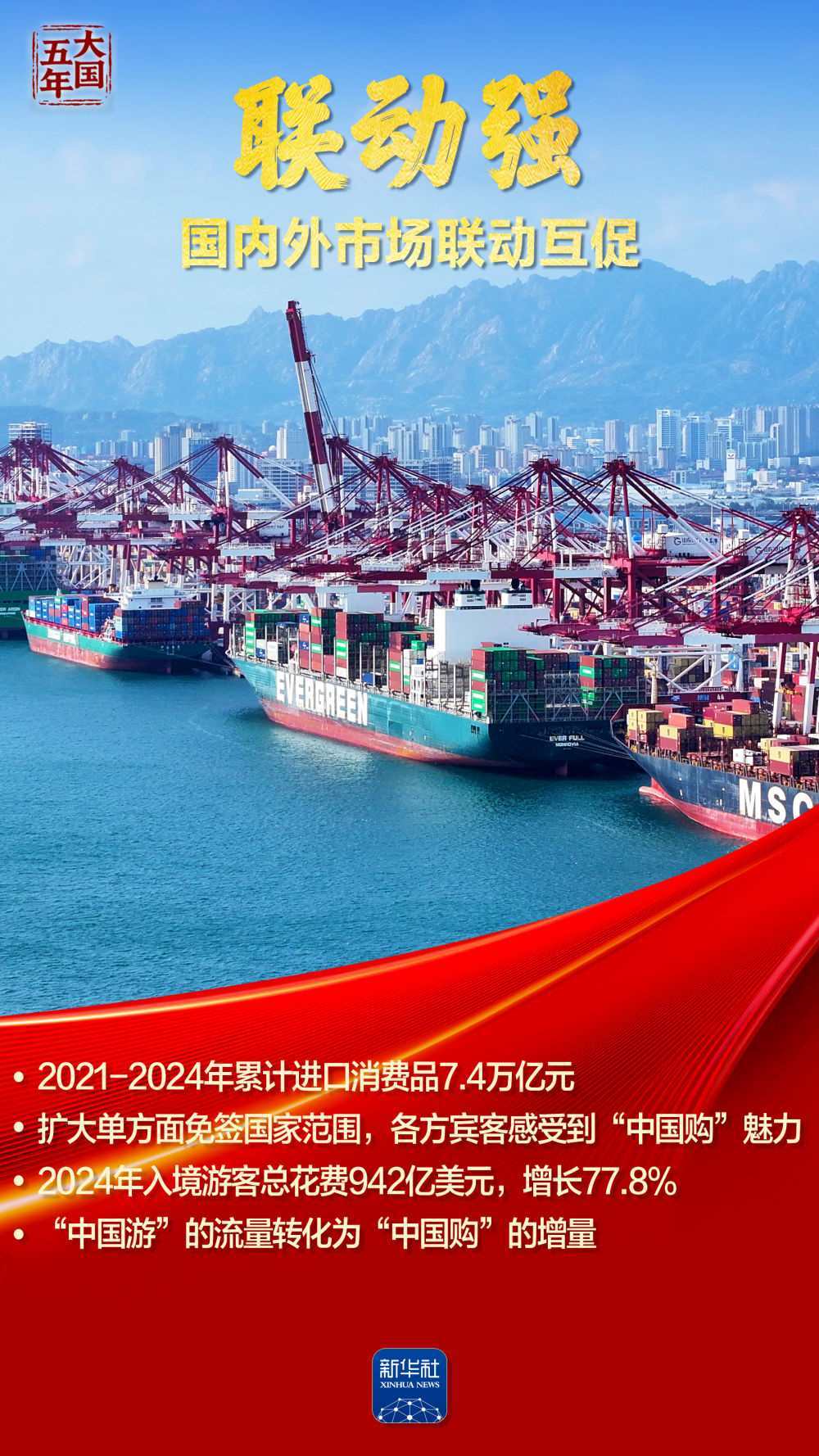 這五年,“智能”“綠色”煥新潮涌,國(guó)風(fēng)文創(chuàng)、數(shù)字消費(fèi)勾勒品質(zhì)生活新圖景;服務(wù)消費(fèi)快速增長(zhǎng)折射結(jié)構(gòu)優(yōu)化;“中國(guó)機(jī)遇”惠及世界,“中國(guó)市場(chǎng)”成為共享市場(chǎng)。跟隨海報(bào),共同見證超大規(guī)模市場(chǎng)蘊(yùn)藏的磅礴底氣,感受提振內(nèi)需釋放的澎湃動(dòng)力。