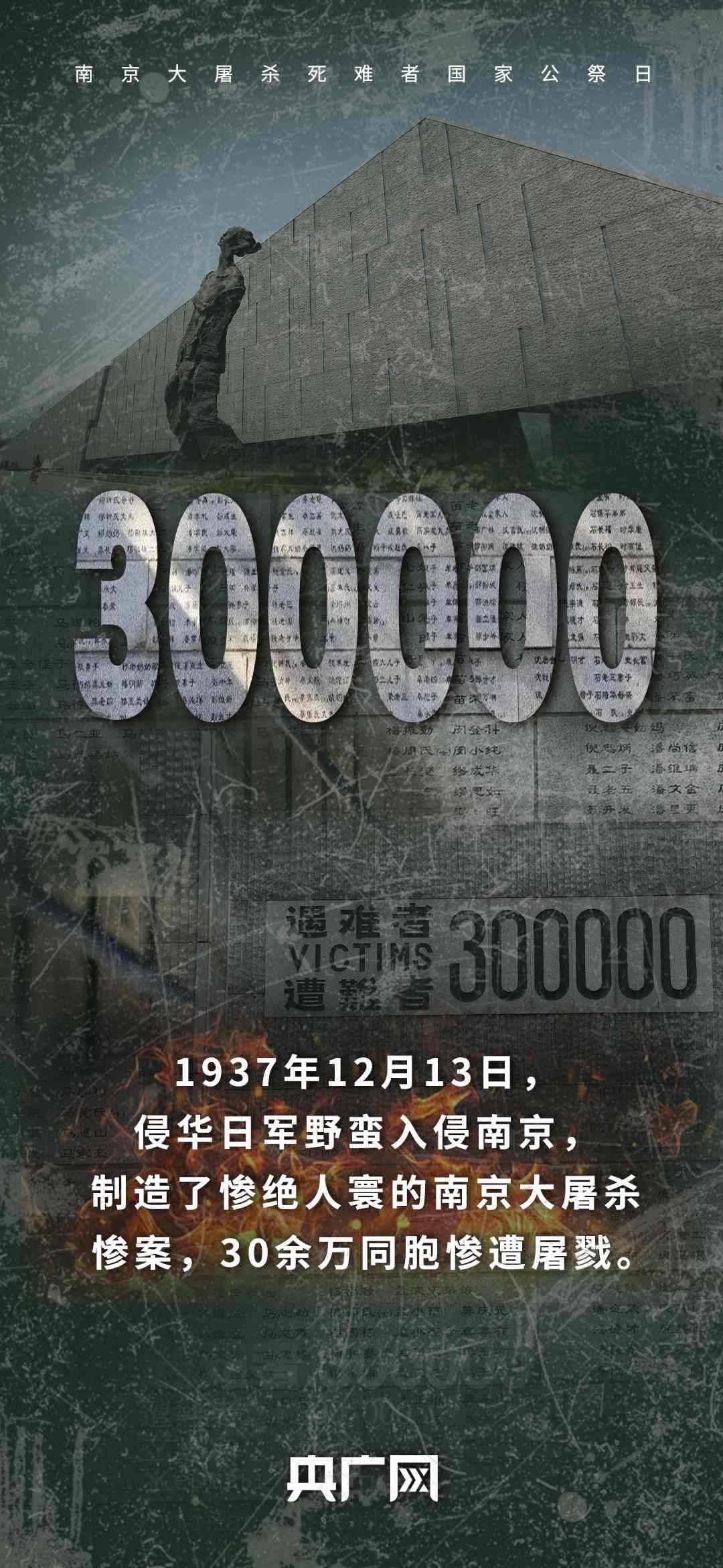 今天(12月13日)是第十二個(gè)南京大屠殺死難者國(guó)家公祭日。88年前,侵華日軍制造了慘絕人寰的南京大屠殺,這是一場(chǎng)持續(xù)40多天的人間浩劫,30多萬(wàn)同胞罹難……每一個(gè)數(shù)字,都在提醒著我們,曾經(jīng)的血與淚,不能忘,不敢忘!銘記歷史,珍愛(ài)和平,吾輩自強(qiáng)!