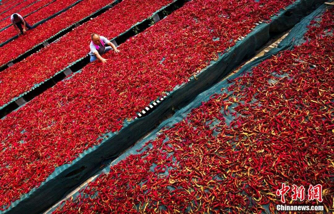 圖為雞澤縣椒農(nóng)在曬辣椒。(資料圖) 中共雞澤縣委宣傳部供圖