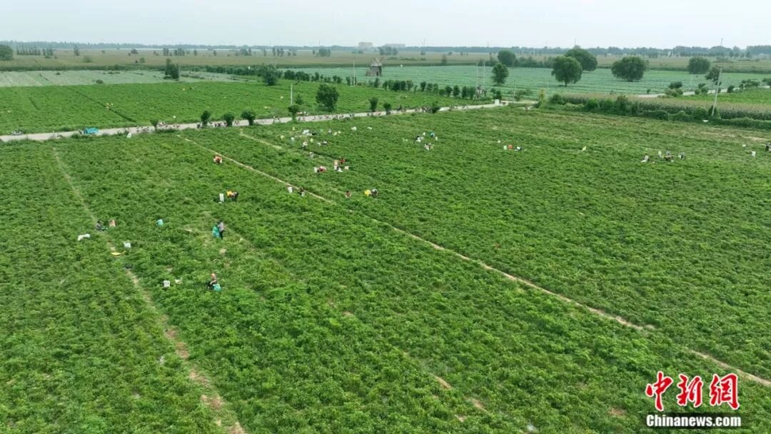 冀南平原上,連片的辣椒田如紅色海洋翻涌——細(xì)長(zhǎng)的羊角椒緊緊扒著枝頭蕩來(lái)蕩去,油亮的皮膚曬得通紅。