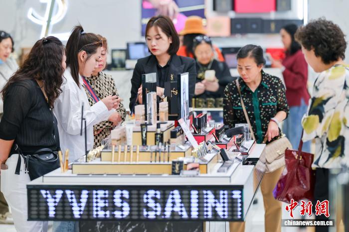 1月18日,顧客在cdf??趪H免稅城選購化妝品。海南自貿(mào)港封關(guān)首月,離島免稅市場火爆。 中新網(wǎng)記者 駱云飛 攝