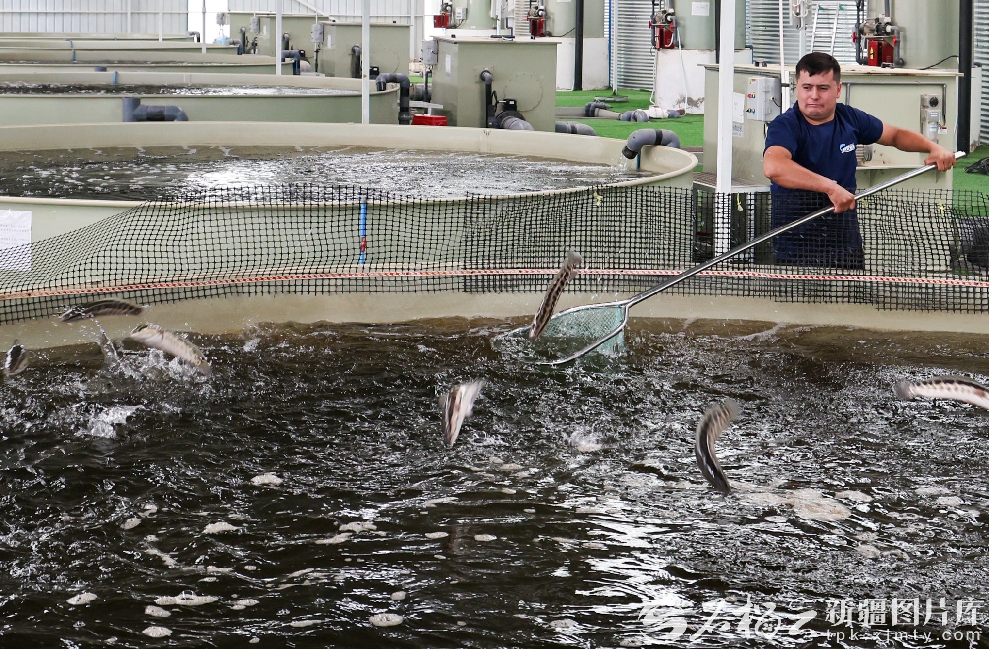 和田域見疆來水產(chǎn)養(yǎng)殖有限責(zé)任公司員工在對(duì)養(yǎng)殖池的黑魚進(jìn)行捕撈。許曉龍攝(資料圖)