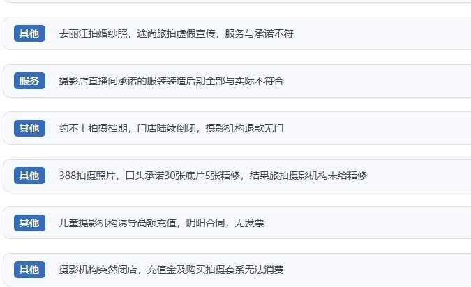 網(wǎng)友涉及攝影服務(wù)相關(guān)投訴問題。(“人民投訴”用戶投訴截圖)