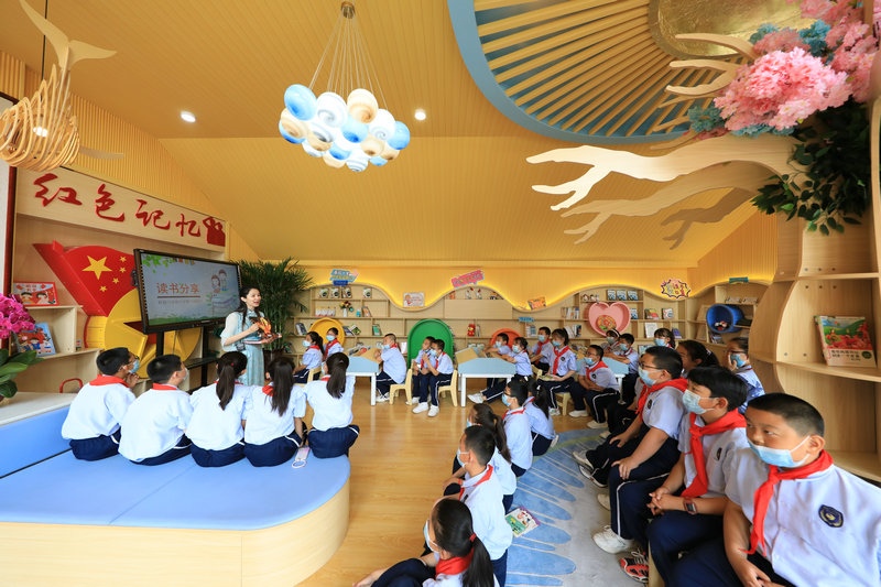 自治區(qū)道德模范楊嶺攜手蒙牛集團(tuán)走進(jìn)賽罕區(qū)敕勒川綠地小學(xué)騰飛路校區(qū),為那里的孩子們捐建悅讀吧。