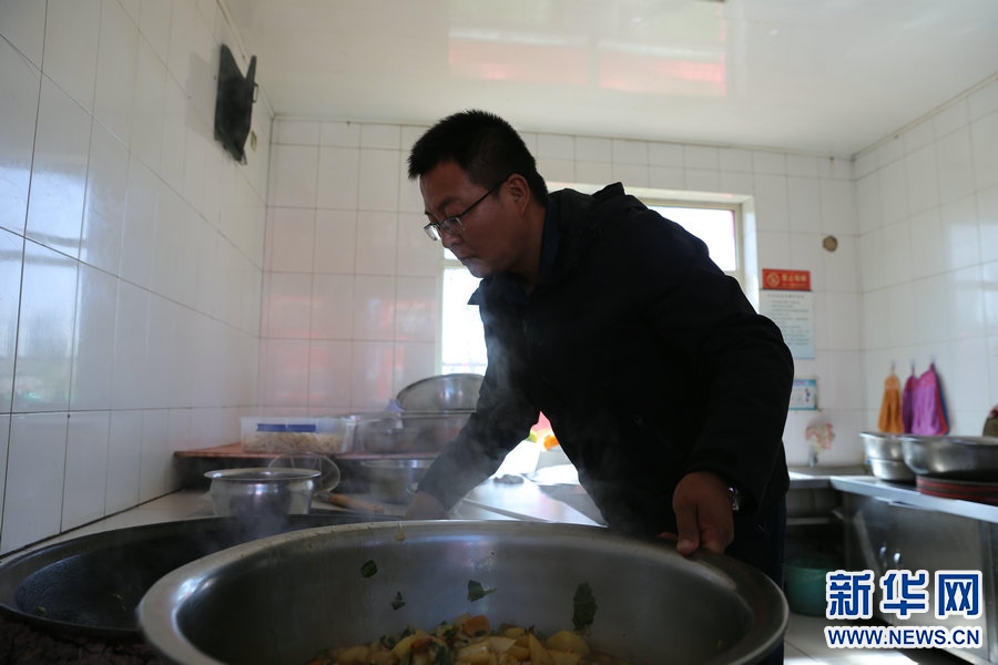 張慧聰?shù)囊惶鞆牧璩?點(diǎn)開始,喂豬、燒鍋爐、摘菜、盯食材、上課、查宿舍,豬一天要喂三次、鍋爐也要頻繁關(guān)注、三餐食材一頓也不能落、四個年級每班每天都要上課、每隔一段時間還得清理旱廁……這里沒有一間屬于他的辦公室,但這里卻處處是他的“辦公室”。新華網(wǎng) 李倩攝