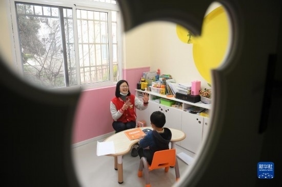 3月29日,一名老師在給自閉癥兒童做一對(duì)一訓(xùn)練。
