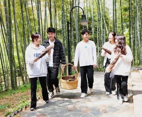 進(jìn)行40分鐘的“漫談式”課程后,師生們一起拿起鋤頭,開始挖筍實踐。在勞動中,他們感受著春天的饋贈。該校視覺傳達(dá)與設(shè)計專業(yè)的南通姑娘周雨濛從未嘗試過挖筍。對于校園中的竹子是何人養(yǎng)護(hù)、怎么養(yǎng)護(hù),她了解得不多。課堂上,她第一次拿起鋤頭,在學(xué)校校工的帶領(lǐng)下挖筍。