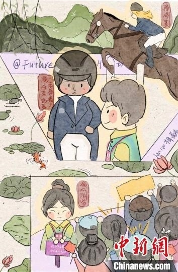 10月2日,中國隊首次獲得亞運馬術項目金牌,實現(xiàn)“零的突破”。高銘還特地畫了一幅中國騎手華天奪冠的漫畫,以此紀念這一歷史性時刻。她希望有機會以“小青荷”的名義將這幅漫畫送給華天,表達對他榮獲冠軍、為國爭光的祝賀。