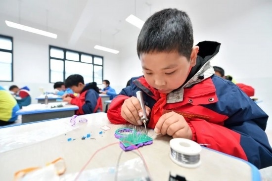 2023年12月14日,在湖北省襄陽市??悼h后坪鎮(zhèn)中心學(xué)校,學(xué)生們參加電子制作競賽。通訊員 楊韜 黃玲 攝