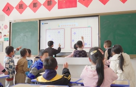 2023年12月20日,在云南省昭通市魯?shù)榭h卯家灣小學(xué),學(xué)生們通過智能雙師課堂,進(jìn)行《注意力專項訓(xùn)練》課程的大屏互動。通訊員 鄭敬亭 攝