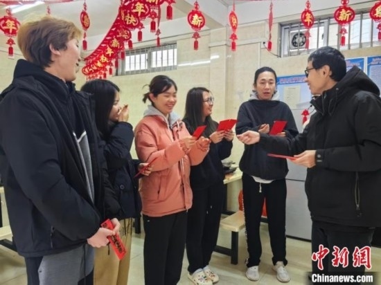 泰國留學(xué)生趙思妮說,最讓她開心又興奮的是可以在吃年夜飯的時候,領(lǐng)到學(xué)校發(fā)的新年“紅包”,寓意安康吉祥、幸福美好。