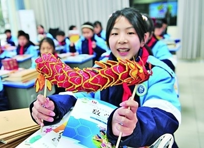 2月26日,湖北省宜昌市秭歸縣實(shí)驗(yàn)小學(xué)學(xué)生展示寒假期間制作的手工作品。