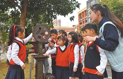2022年3月,九龍坡區(qū)教委印發(fā)《關(guān)于推進中小學(xué)集團化辦學(xué)的意見》,謝家灣金茂小學(xué)成為謝家灣教育集團一體化辦學(xué)成員校。謝家灣金茂小學(xué)的前身是重慶建設(shè)工業(yè)(集團)有限公司子弟學(xué)校,約1/3的教師曾是工廠職工?!盎趯W(xué)校情況,我們強調(diào)培養(yǎng)學(xué)生養(yǎng)成熱愛勞動的習(xí)慣,形成陽光心態(tài)。”謝家灣金茂小學(xué)黨總支書記楊永財指著校園內(nèi)擺放的老舊機床說,“重慶建設(shè)工業(yè)(集團)有限公司發(fā)展歷史厚重,學(xué)校積極挖掘紅色資源,給孩子們講好革命歷史,上好思政課。”