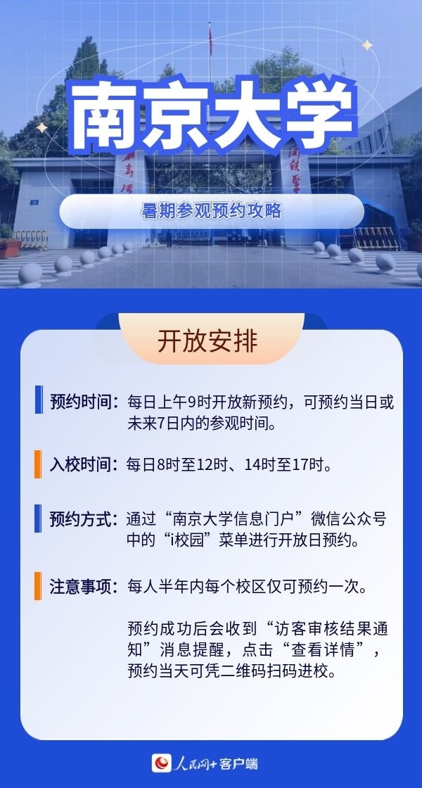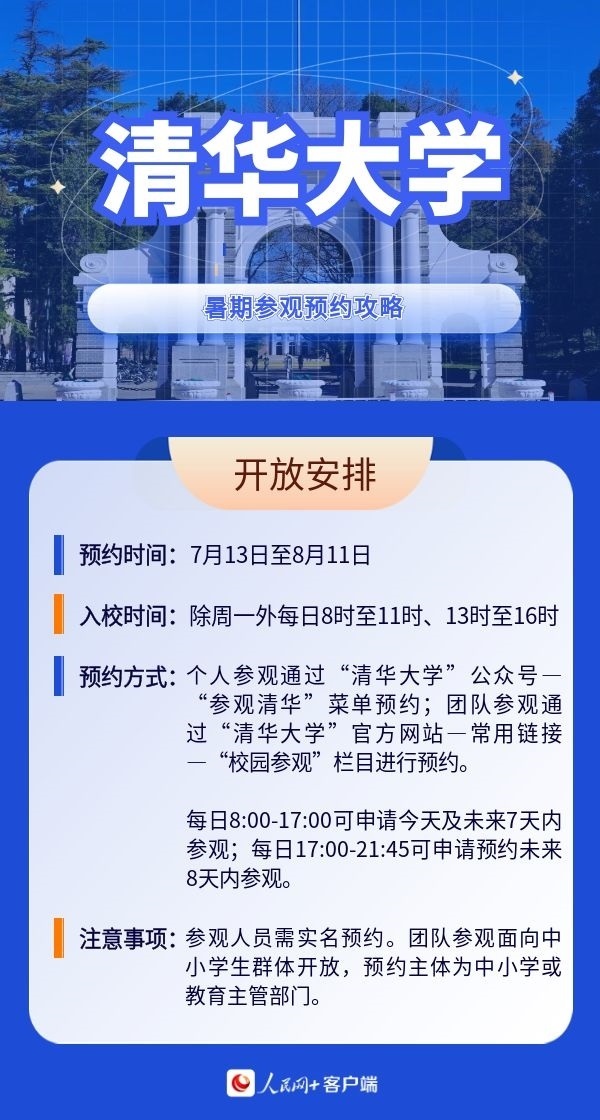 人民網(wǎng)北京7月19日電 暑假來(lái)臨,帶孩子參觀(guān)高校,感受學(xué)校人文歷史底蘊(yùn)以及濃厚的學(xué)術(shù)氛圍,已經(jīng)成為很多家長(zhǎng)的選擇。近日,全國(guó)多所高校開(kāi)放校園,接受公眾參觀(guān)。那么如何預(yù)約進(jìn)校?有什么注意事項(xiàng)?人民網(wǎng)特別整理了部分高校的參觀(guān)預(yù)約攻略,一起來(lái)看。(郝孟佳、實(shí)習(xí)生趙雪祺)