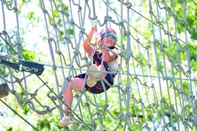 孩子在江蘇南京一家探險(xiǎn)樂(lè)園體驗(yàn)“樹上探險(xiǎn)”活動(dòng)。新華社發(fā)