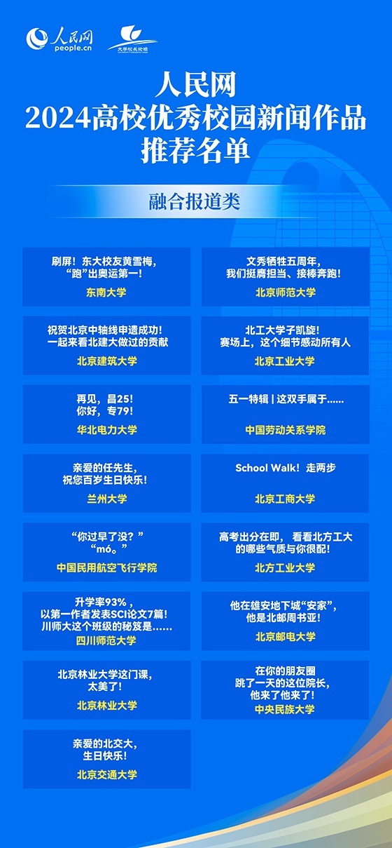 自2018年以來,人民網(wǎng)已連續(xù)七年開展優(yōu)秀校園新聞作品推選活動,并依托人民網(wǎng)大學校長論壇公開發(fā)布。推薦活動旨在展示高校新聞戰(zhàn)線年度優(yōu)秀成果,發(fā)揮優(yōu)秀新聞作品的示范和教育作用,鼓勵校園媒體弘揚主旋律,傳播正能量。