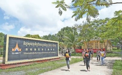 西哈努克港工商學(xué)院由柬埔寨西港特區(qū)公司聯(lián)合中國無錫商業(yè)職業(yè)技術(shù)學(xué)院共同創(chuàng)辦,是柬埔寨首個(gè)中文大學(xué)。圖為學(xué)生們行走在校園。