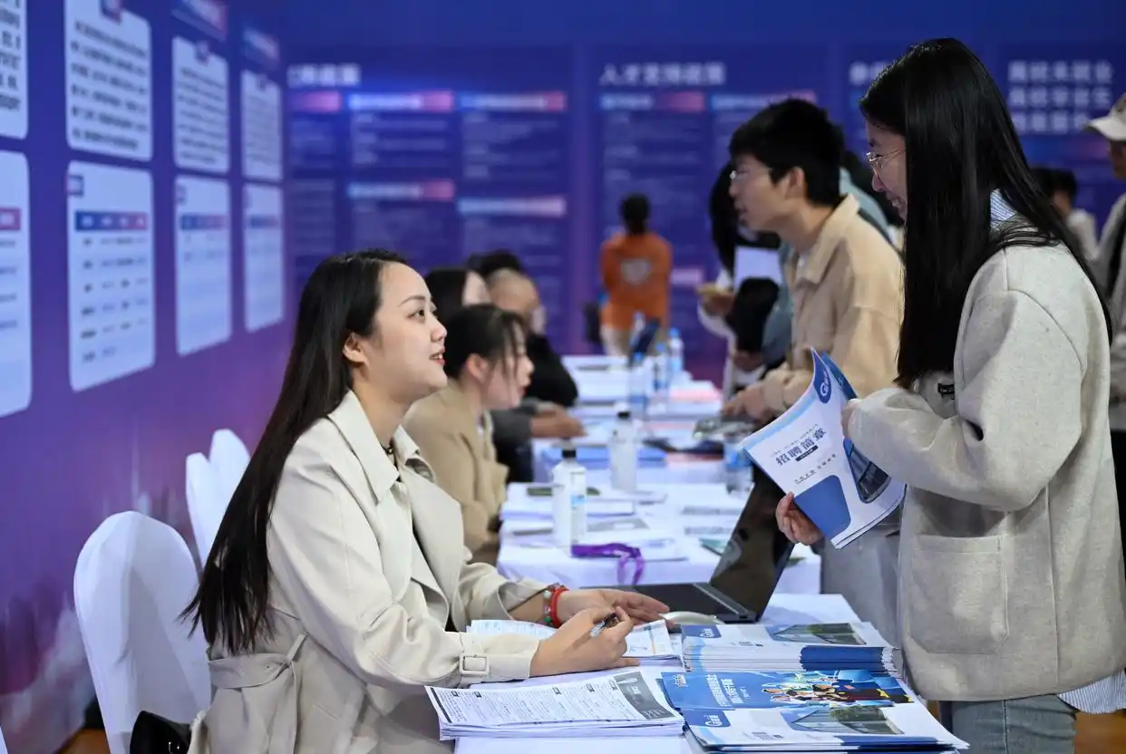 3月20日,環(huán)渤海城市聯(lián)合招聘高校畢業(yè)生春季專場(chǎng)活動(dòng)在天津職業(yè)技術(shù)師范大學(xué)啟動(dòng),來自環(huán)渤海地區(qū)400多家企業(yè)提供崗位1.1萬個(gè)?;顒?dòng)現(xiàn)場(chǎng)還設(shè)立就業(yè)服務(wù)臺(tái),為學(xué)生提供指導(dǎo)。圖為當(dāng)日,求職學(xué)生(右)和招聘方代表在招聘會(huì)現(xiàn)場(chǎng)交談。新華社記者 趙子碩攝