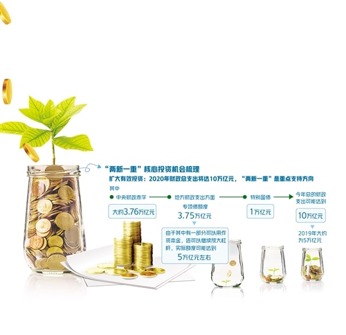 為重點(diǎn)支持既促消費(fèi)惠民生又調(diào)結(jié)構(gòu)增后勁的“兩新一重”建設(shè),根據(jù)《政府工作報(bào)告》,今年特別安排地方政府專(zhuān)項(xiàng)債券3.75萬(wàn)億元,比2019年有所增加;另有抗疫特別國(guó)債1萬(wàn)億元,資金用途共涉及6個(gè)領(lǐng)域,其中有部分也指向“兩新一重”建設(shè)領(lǐng)域。