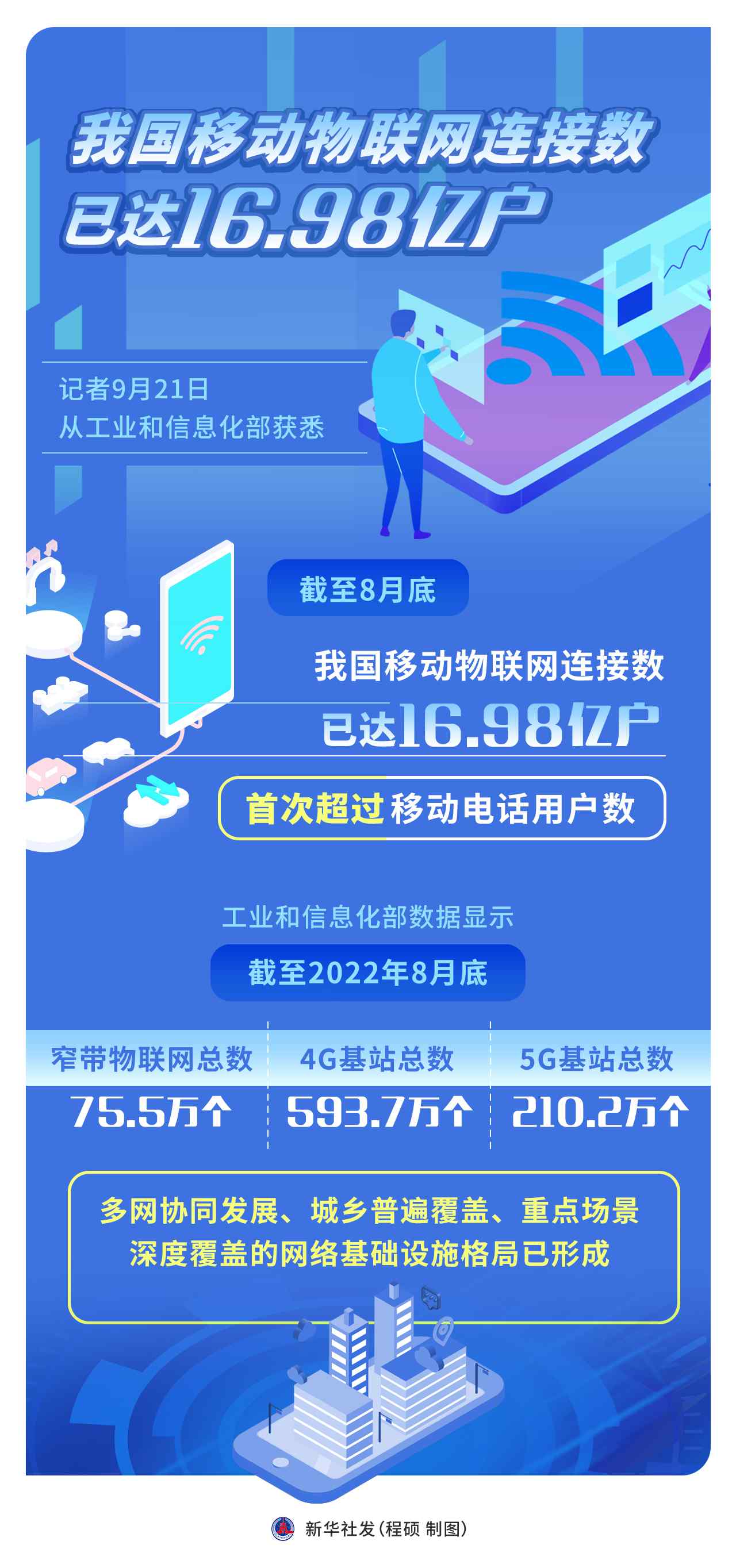 記者21日從工業(yè)和信息化部獲悉,截至8月底,我國(guó)移動(dòng)物聯(lián)網(wǎng)連接數(shù)已達(dá)16.98億戶,首次超過移動(dòng)電話用戶數(shù)。