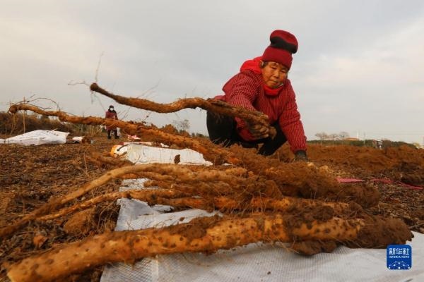 時(shí)下,河南省焦作市溫縣種植的鐵棍山藥進(jìn)入收獲季,當(dāng)?shù)剞r(nóng)民忙著采收、加工、銷售。