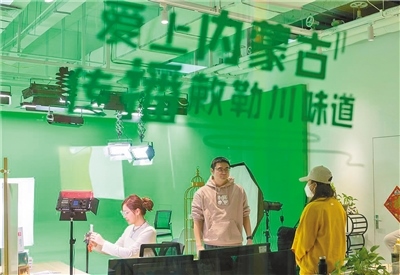 走進呼和浩特市金橋電子商務(wù)產(chǎn)業(yè)園二樓的“愛上內(nèi)蒙古正能量網(wǎng)紅孵化基地”,首先映入眼簾的,是擺滿興安盟大米、燕麥米、高原杏仁露等產(chǎn)品的內(nèi)蒙古味道展臺。這里,既是內(nèi)蒙古味道走出內(nèi)蒙古的一個起點,更是像張舟一樣的內(nèi)蒙古“網(wǎng)紅”們夢想開始的地方。