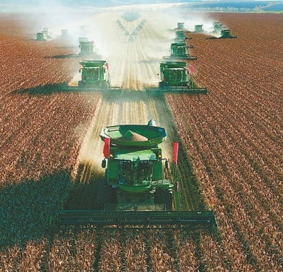 大型農(nóng)機(jī)在黑龍江省北大荒集團(tuán)九三分公司鶴山農(nóng)場(chǎng)高粱基地作業(yè)。 任寶吉攝