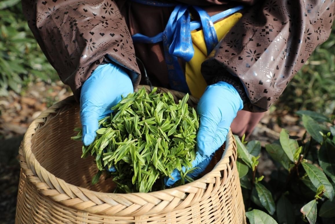 像林阿姨這樣熟練的采茶工,從早上七點多開始,一直采到下午五點,預(yù)計能采4斤鮮葉,約可產(chǎn)出1斤的干茶。“今年的茶葉賣相好、顏色正、大小均勻。你看這葉片多漂亮!”林阿姨一邊說著一邊低頭忙碌。