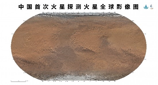 人民網(wǎng)北京4月24日電 (記者趙竹青、王震)記者從國家航天局獲悉,4月24日,在2023年“中國航天日”主場活動啟動儀式上,國家航天局和中國科學(xué)院聯(lián)合發(fā)布了中國首次火星探測火星全球影像圖。本次發(fā)布的影像圖為彩色,包括按照制圖標(biāo)準(zhǔn)分別制作的火星東西半球正射投影圖、魯賓遜投影圖和墨卡托投影加方位投影圖,空間分辨率為76米,將為開展火星探測工程和火星科學(xué)研究提供質(zhì)量更好的基礎(chǔ)底圖。天問一號任務(wù)獲取的包括影像圖在內(nèi)的一批科學(xué)探測數(shù)據(jù),將為人類深入認(rèn)知火星作出中國貢獻(xiàn)。