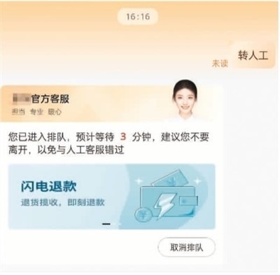 現(xiàn)實中,智能客服的出現(xiàn)的確提供了諸多便利,但當智能客服的標準化應答無法解決遇到的具體問題時,更多用戶便轉向人工客服。然而,人工客服的接通率較低。有網友反映,即便通過排隊接入人工客服,有時為了提交信息退出聊天窗口后,又需重新排隊進入,而此時,人工客服已換人,之前提出的問題也需要重復表述。