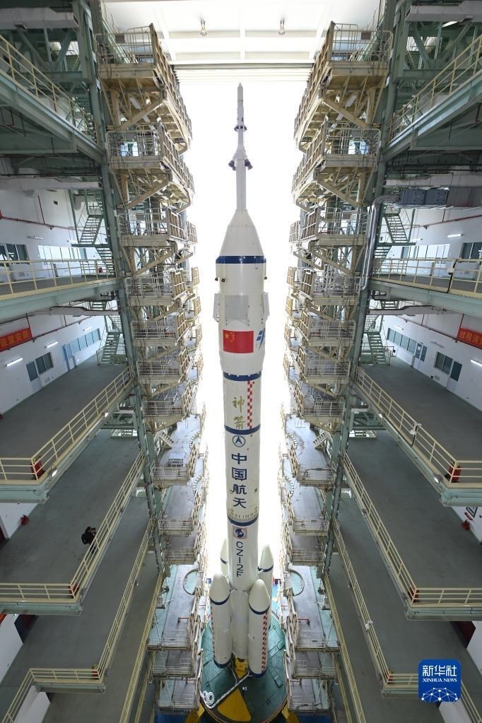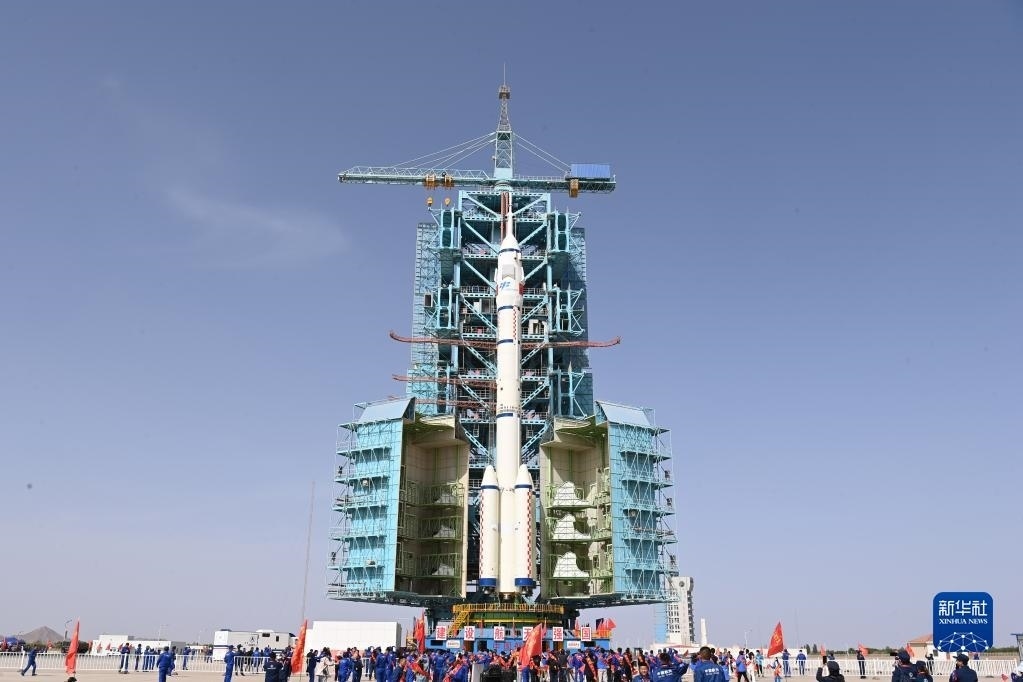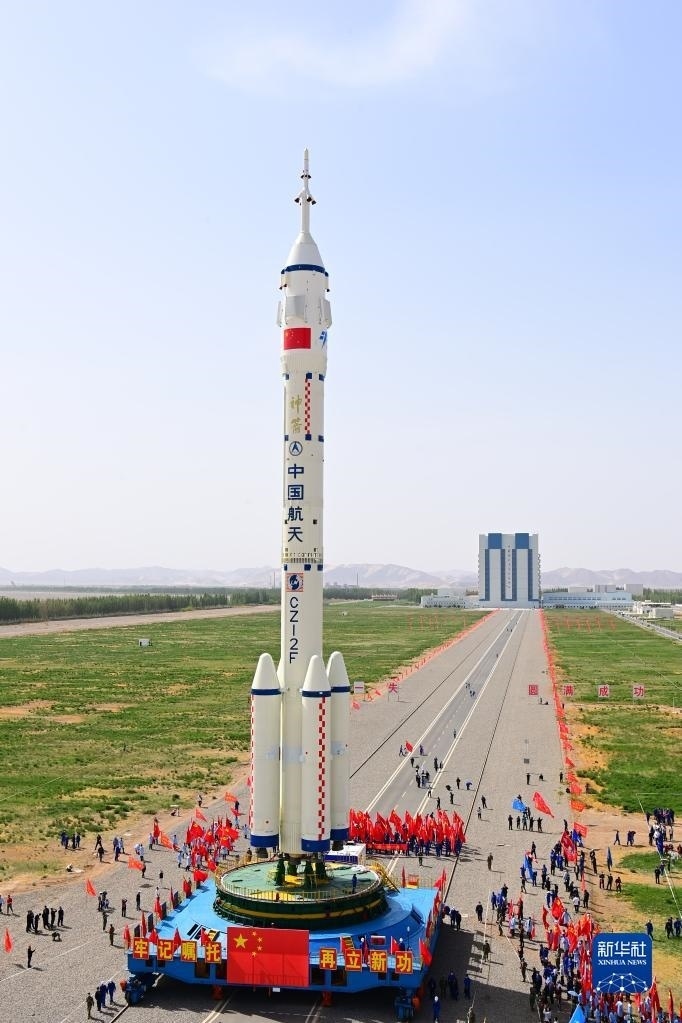 5月22日,神舟十六號載人飛船與長征二號F遙十六運載火箭組合體準備轉(zhuǎn)往發(fā)射場。新華社發(fā)(汪江波 攝)