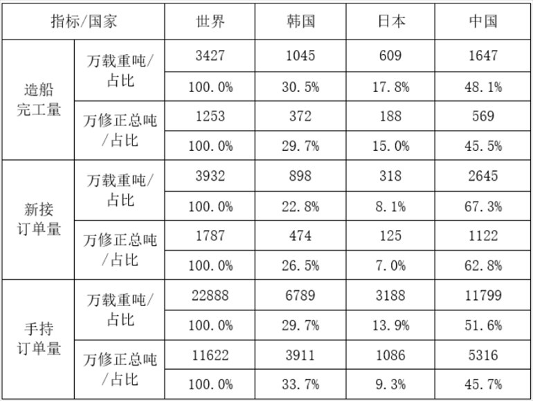 另?yè)?jù)數(shù)據(jù)顯示,1-5月,全國(guó)造船完工量569萬(wàn)修正總噸,同比增長(zhǎng)29%;新承接船舶訂單量1122萬(wàn)修正總噸,同比增長(zhǎng)24.2%。截至5月底,手持船舶訂單量5316萬(wàn)修正總噸,同比增長(zhǎng)27.4%。按修正總噸計(jì),中國(guó)造船完工量、新接訂單量、手持訂單量分別占世界市場(chǎng)份額的45.5%、62.8%和45.7%。