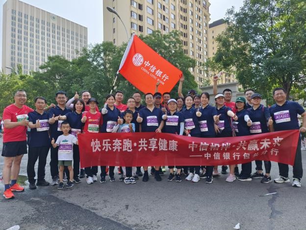 賽場(chǎng)上,在由包頭市當(dāng)?shù)馗鞔笃髽I(yè)組織的健康跑跑團(tuán)中,中信銀行包頭分行組織33名職工和馬拉松愛(ài)好者踴躍參賽,著裝整齊,精神飽滿,以實(shí)際行動(dòng)踐行“快樂(lè)奔跑共享健康中信相伴共贏未來(lái)”,展現(xiàn)了中信銀行人奮力拼搏、奮勇向前的精神風(fēng)貌,成為本屆馬拉松賽事上一道亮麗的金融風(fēng)景線。