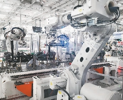 在繁榮廠區(qū),這樣的工業(yè)智能機(jī)器人還有很多,通過(guò)機(jī)器人間的協(xié)作,實(shí)現(xiàn)整車前后風(fēng)擋玻璃、輪胎、座椅等全自動(dòng)裝配,機(jī)艙管路、胎壓等實(shí)現(xiàn)在線全自動(dòng)檢測(cè)。焊裝車間自動(dòng)化率達(dá)到100%,涂膠自動(dòng)化率達(dá)到97%,總裝自動(dòng)化率達(dá)到30%。