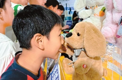 2024年9月,賽博創(chuàng)力在杭州阿里云云棲大會(huì)上亮相,其推出的具身智能AI互動(dòng)玩具成為焦點(diǎn)。展臺(tái)前,一名小男孩正與AI小狗聊天。