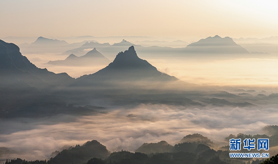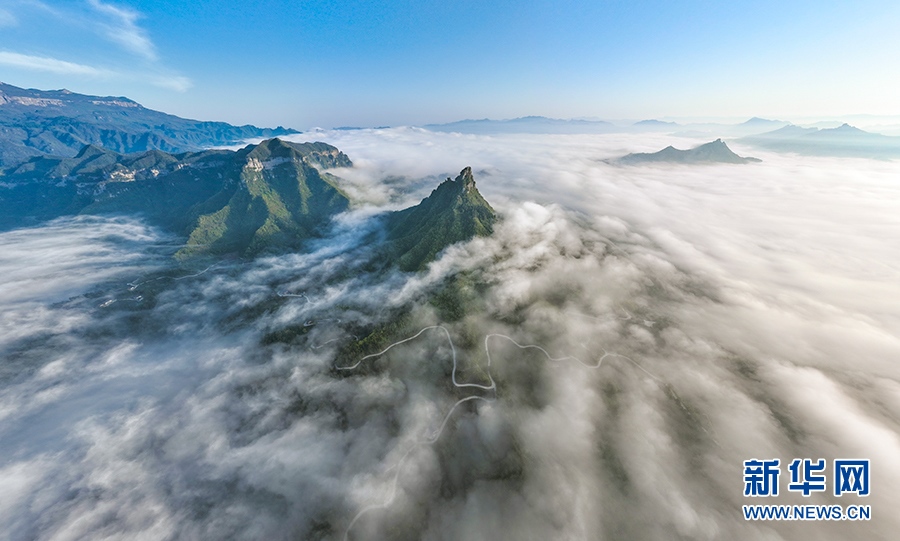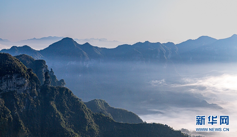 宛如薄紗的平流霧在山澗河谷漫舞。新華網發(fā)(瞿明斌 攝)