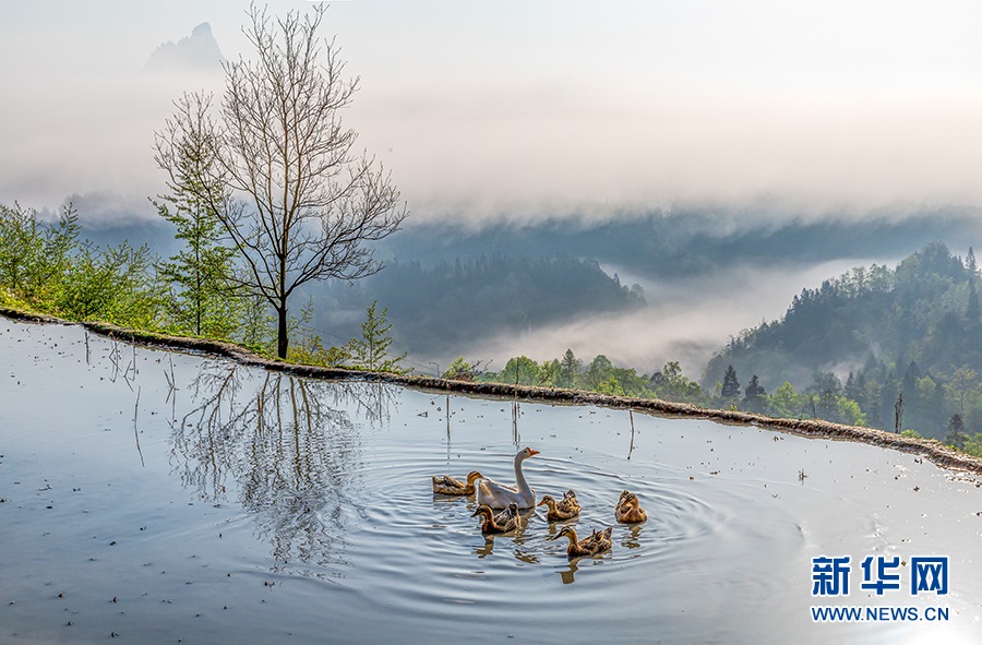 春雨洗禮后的山鄉(xiāng)田野美如畫卷。新華網發(fā)(瞿明斌 攝)