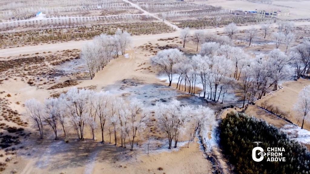 寒冬時(shí)節(jié),內(nèi)蒙古自治區(qū)鄂爾多斯市杭錦旗出現(xiàn)大面積的霧凇景觀,美不勝收。晶瑩剔透的冰晶掛滿樹梢,仿佛蒙上一層唯美的白紗。