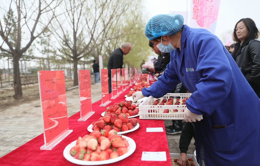 在此前的4月28日,本屆“草莓文化節(jié)”還舉行了草莓大賽,14家種植單位參加比賽。評委組根據(jù)草莓外觀、品種特性、果品品質(zhì)等多項(xiàng)指標(biāo)進(jìn)行綜合評選,最終評選出金獎一名、銀獎兩名、銅獎三名。通過比賽,以“莓”為媒,線上、線下相結(jié)合,講述草莓故事、提升草莓品牌、傳播草莓文化,促進(jìn)草莓銷售,真正讓小草莓帶動大產(chǎn)業(yè)。