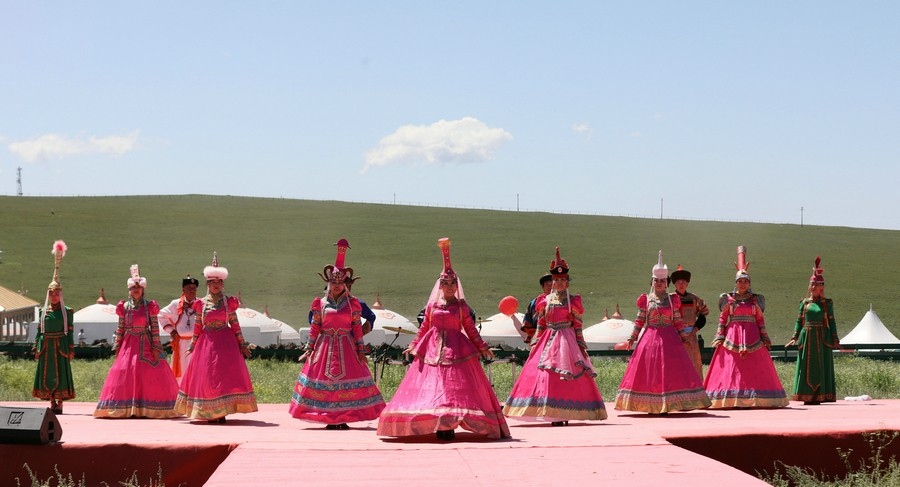 伴著悠揚(yáng)的歌聲,踏著激昂的步伐,在旗幟方隊(duì)的引領(lǐng)下,哈達(dá)方隊(duì)、民族方隊(duì)、烏蘭牧騎方隊(duì)、牧馬人方隊(duì)、裁判員及運(yùn)動(dòng)員方隊(duì)依次走進(jìn)會(huì)場(chǎng)。隨著彩煙燃放,氣球升空,那達(dá)慕在梅林組合的歌曲《歡騰那達(dá)慕》中拉開(kāi)帷幕。隨后,歌伴舞《石榴花開(kāi)》等節(jié)目輪番登場(chǎng),現(xiàn)場(chǎng)觀眾掌聲雷動(dòng),讓來(lái)自全國(guó)各地的游客在紅石崖高山牧場(chǎng)領(lǐng)略了草原的柔情。