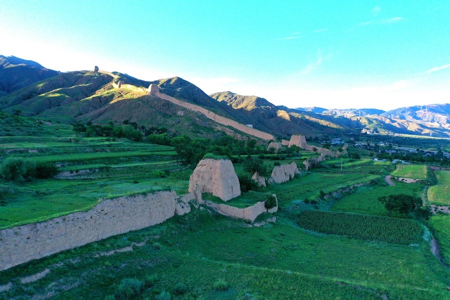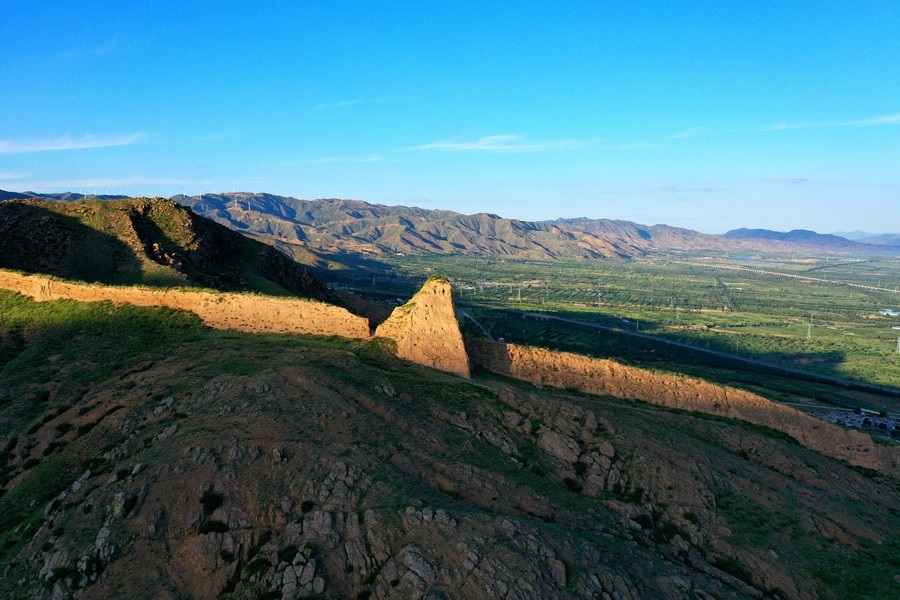 8月16日,從空中視角,俯瞰山西大同天鎮(zhèn)李二口長城。