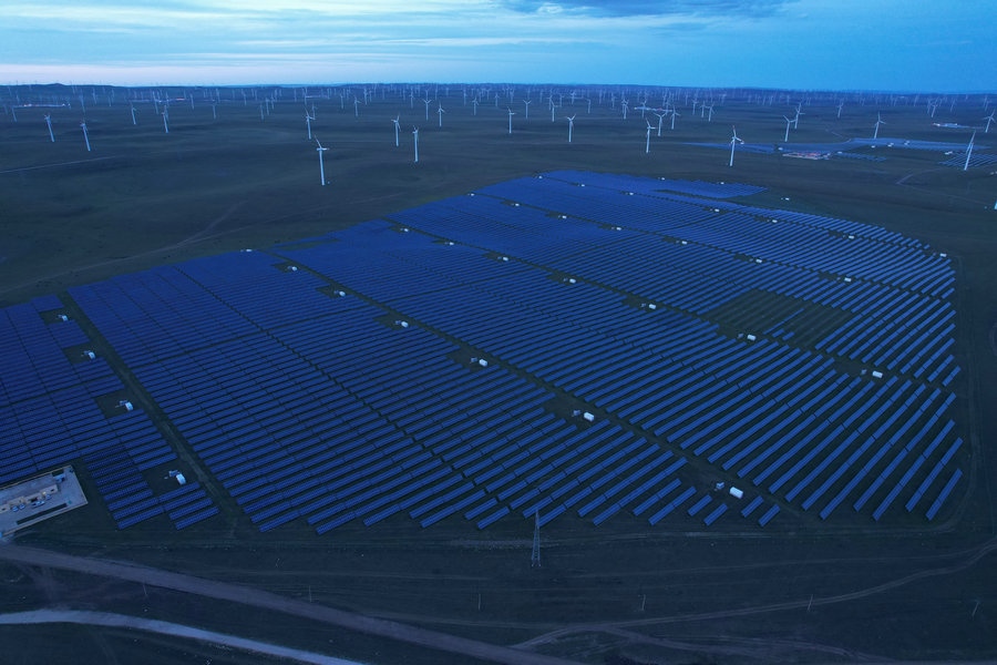 夜幕下的光伏板