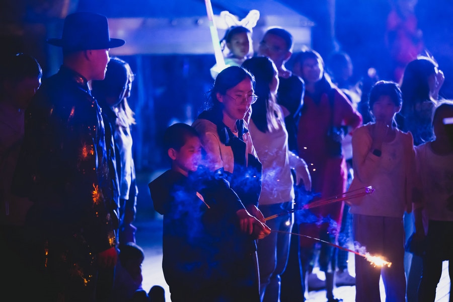當(dāng)夜幕降臨,熊熊篝火點(diǎn)亮草原夜色,你也可以加入到狂歡的隊(duì)伍中,圍著篝火、拉起手,跳起歡快的安代舞,感受豐富多彩的文化娛樂活動(dòng),徜徉夜幕下草原歡樂的海洋。(林則志 攝影)