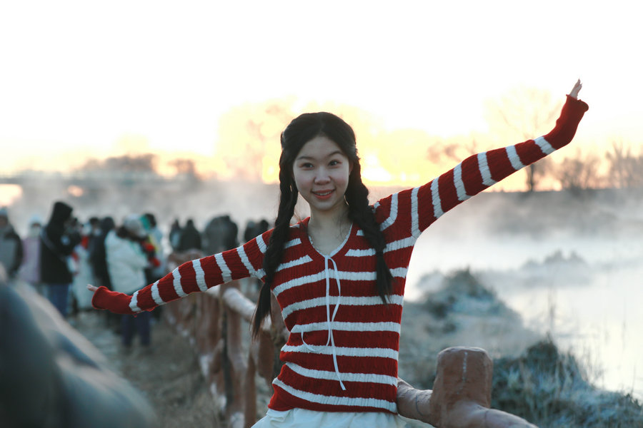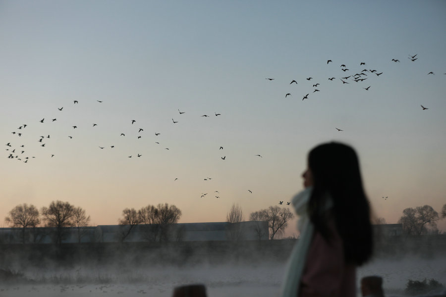 12月15日清晨,上千名游人在呼和浩特玉泉區(qū)班定營村南側(cè)的塞外“千島湖”畔賞景打卡。此處湖水為城市污水經(jīng)處理達(dá)標(biāo)后的再生水,隆冬時(shí)節(jié),再生水流入湖中,水汽蒸騰,岸邊草木霧凇皚皚,良好的生態(tài)吸引了數(shù)萬只赤麻鴨在此翔集棲息,構(gòu)成一幅生動和諧的美麗畫面。每日清晨,都有上千名游客來此觀日出賞美景。