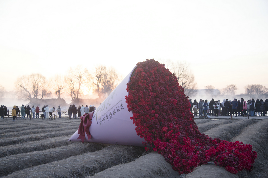 “千島湖”畔,巨型美陳解鎖千島湖新花樣,游客們在觀賞霧凇和赤麻鴨的同時,與其合影后,可以領(lǐng)取一只可愛的赤麻鴨公仔。此外,還有冬日音樂派對、后備箱集市等,讓這個冬日熱鬧非凡。
