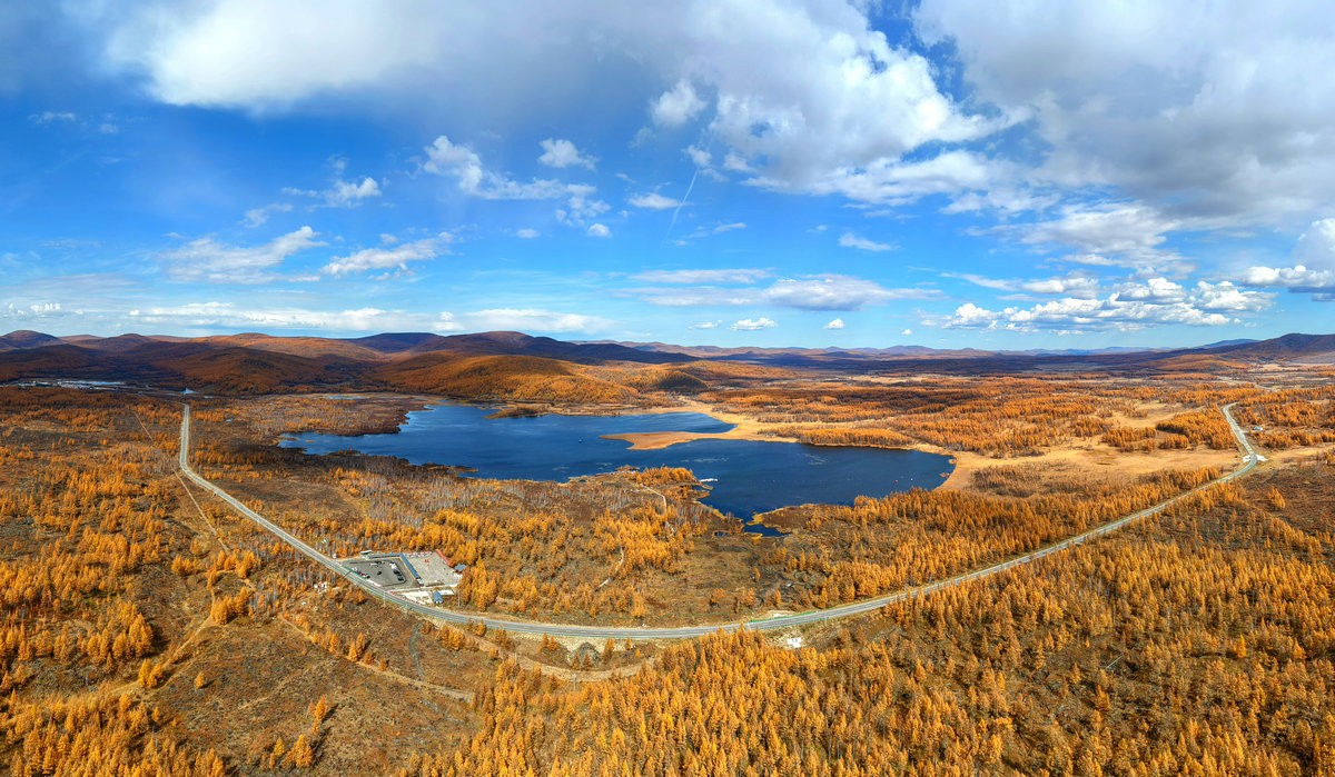 阿爾山,全稱“哈倫—阿爾山”,系蒙古語(yǔ),意為熱的圣水。阿爾山地處內(nèi)蒙古興安盟、大興安嶺西南麓,有著“濃縮的自然博物館”之譽(yù)——草原、森林、溫泉、火山遺跡在此共生,四季皆美,而最迷人的,當(dāng)屬秋日那抹獨(dú)有的“金漸層”,泛黃的落葉松、火紅的楓葉、翠綠的松柏,高空俯瞰,滿目詩(shī)意。
