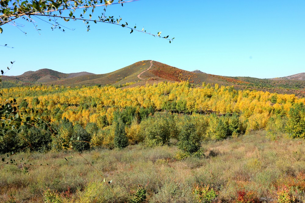 9月26日,金秋時節(jié)的興安盟烏蘭浩特市義勒力特鎮(zhèn)巴彥查干山,迎來一年中最絢麗的時節(jié)。漫山遍野的楓樹、樺樹、灌木以及蒙古栗等樹種,交織成斑斕七彩顏色,在湛藍天空映襯下,構成北疆特有的壯美秋景。