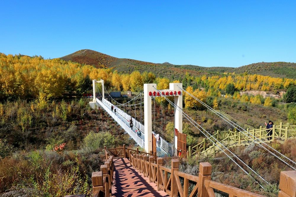 9月26日,游客正在體驗海棠花谷玻璃吊橋