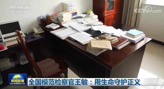 在王敏生前工作的舒城縣人民檢察院,他的辦公室里各種資料鋪滿了辦公桌。